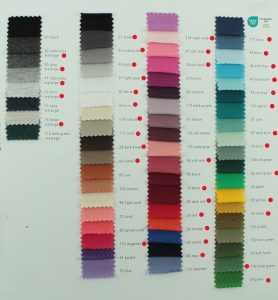 - Die markierten Farben auf der Farbkarte sind Lagerware und können ab 2m bestellt werden.